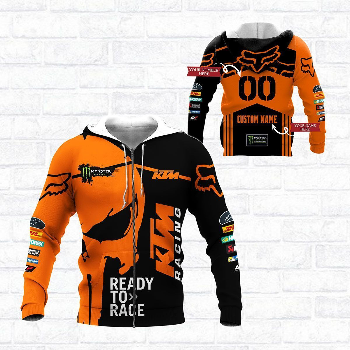 Custom 3D All Over Printed Ktm Racing Shirts Ver2 (Orange&Black)