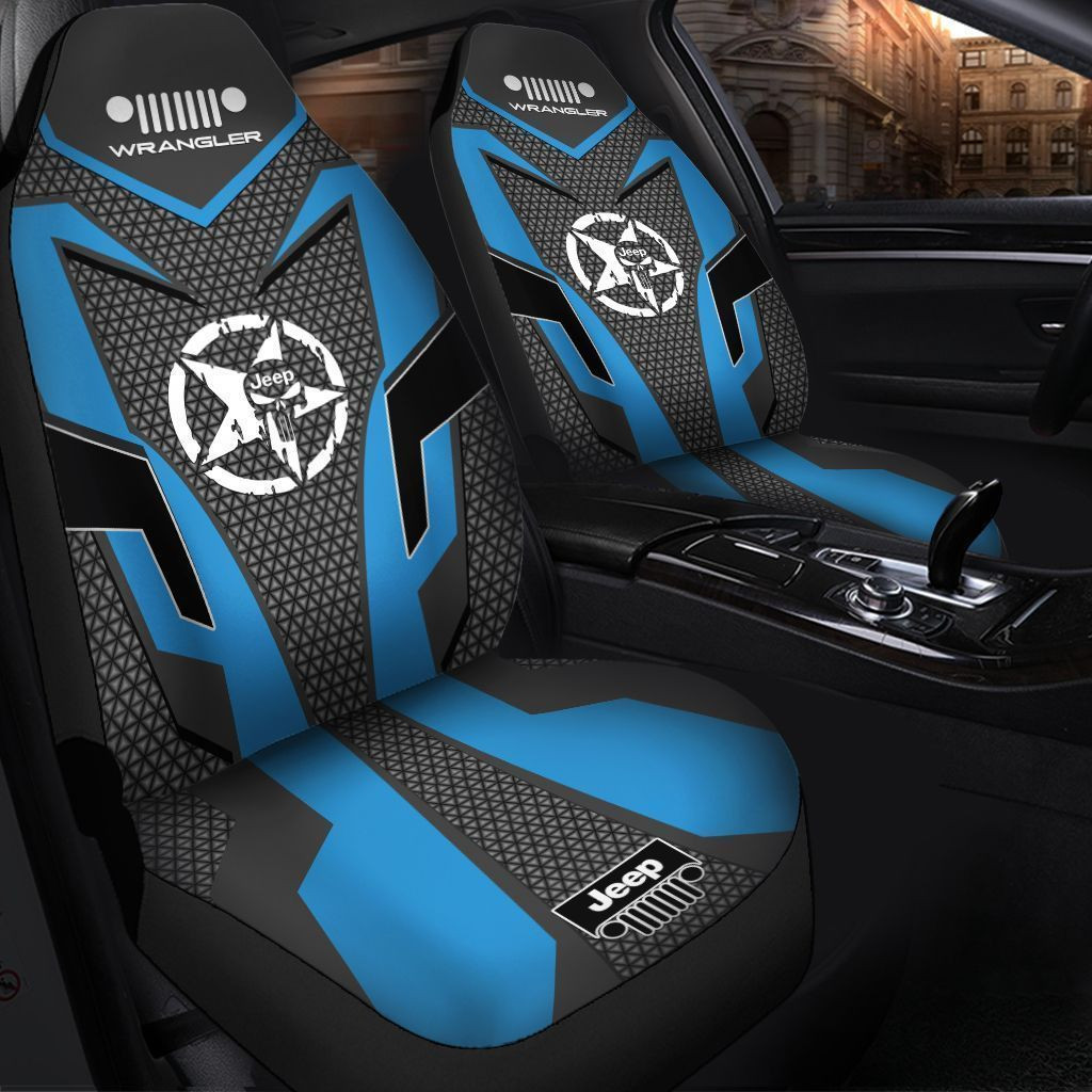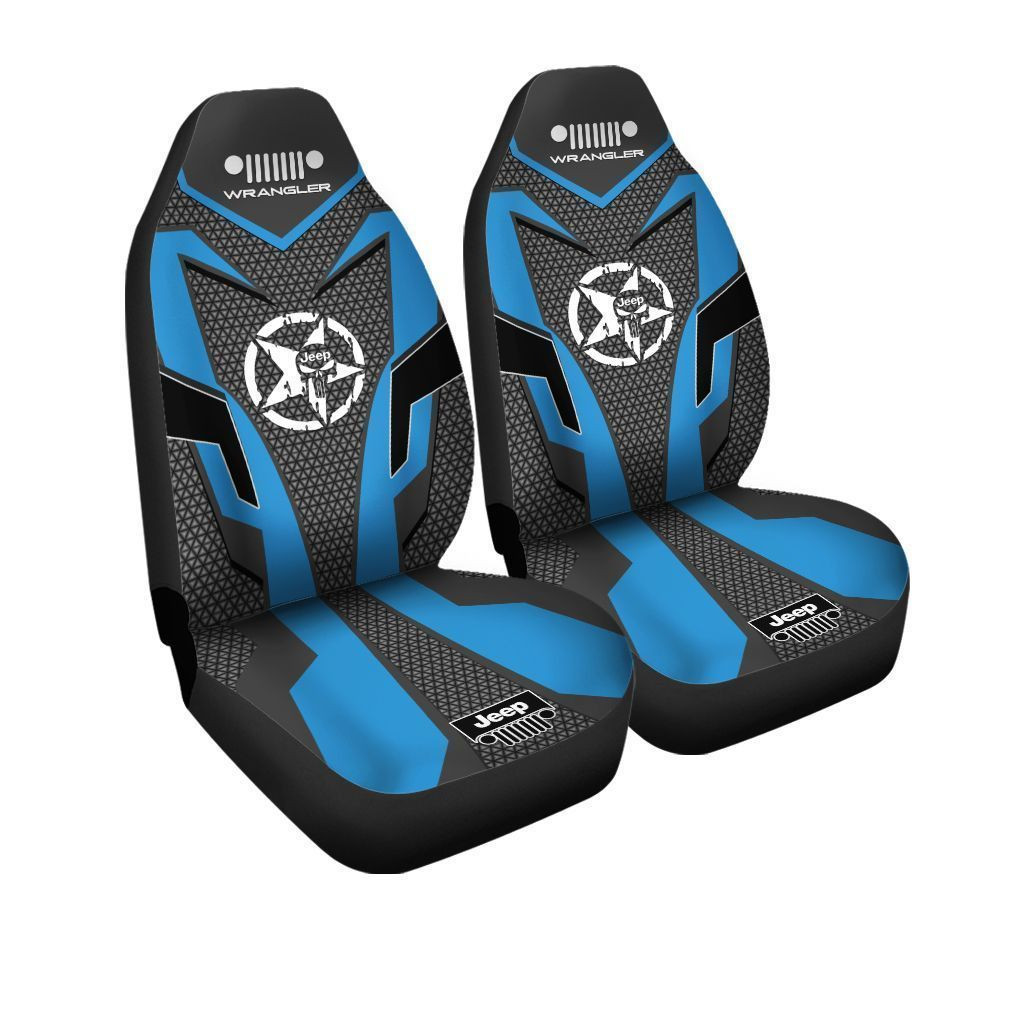 Jeep Wrangler Car Seat Cover (Set Of 2) Ver 4 (Blue)